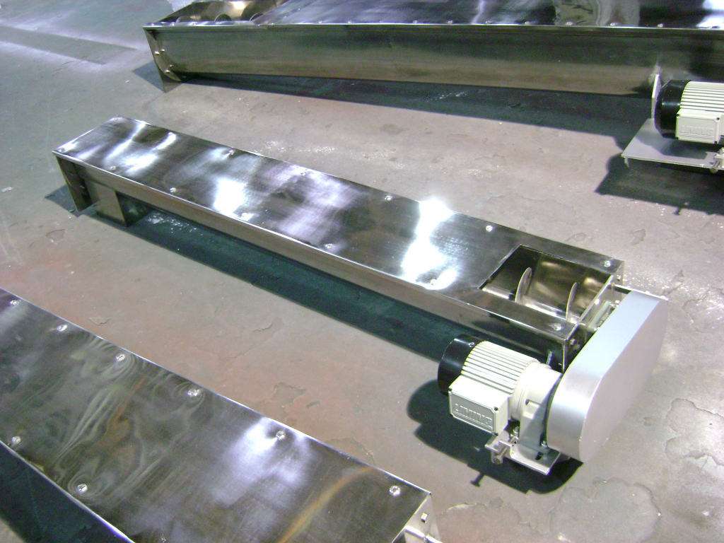 化工不銹鋼螺旋輸送機原則上不同型號的螺旋輸送機都可以采用不銹鋼材質制作,統稱不銹鋼螺旋輸送機或不銹鋼絞龍。